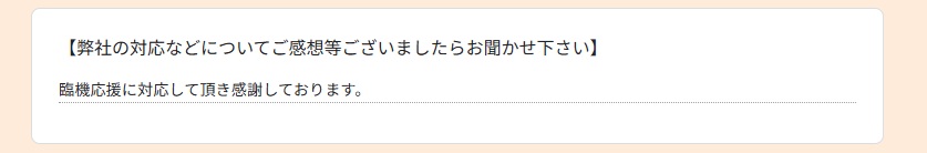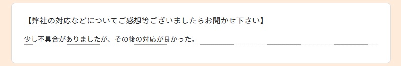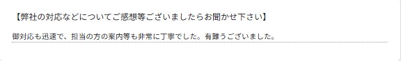御対応も迅速で、担当の方の案内等も非常に丁寧でした。有難うございました。